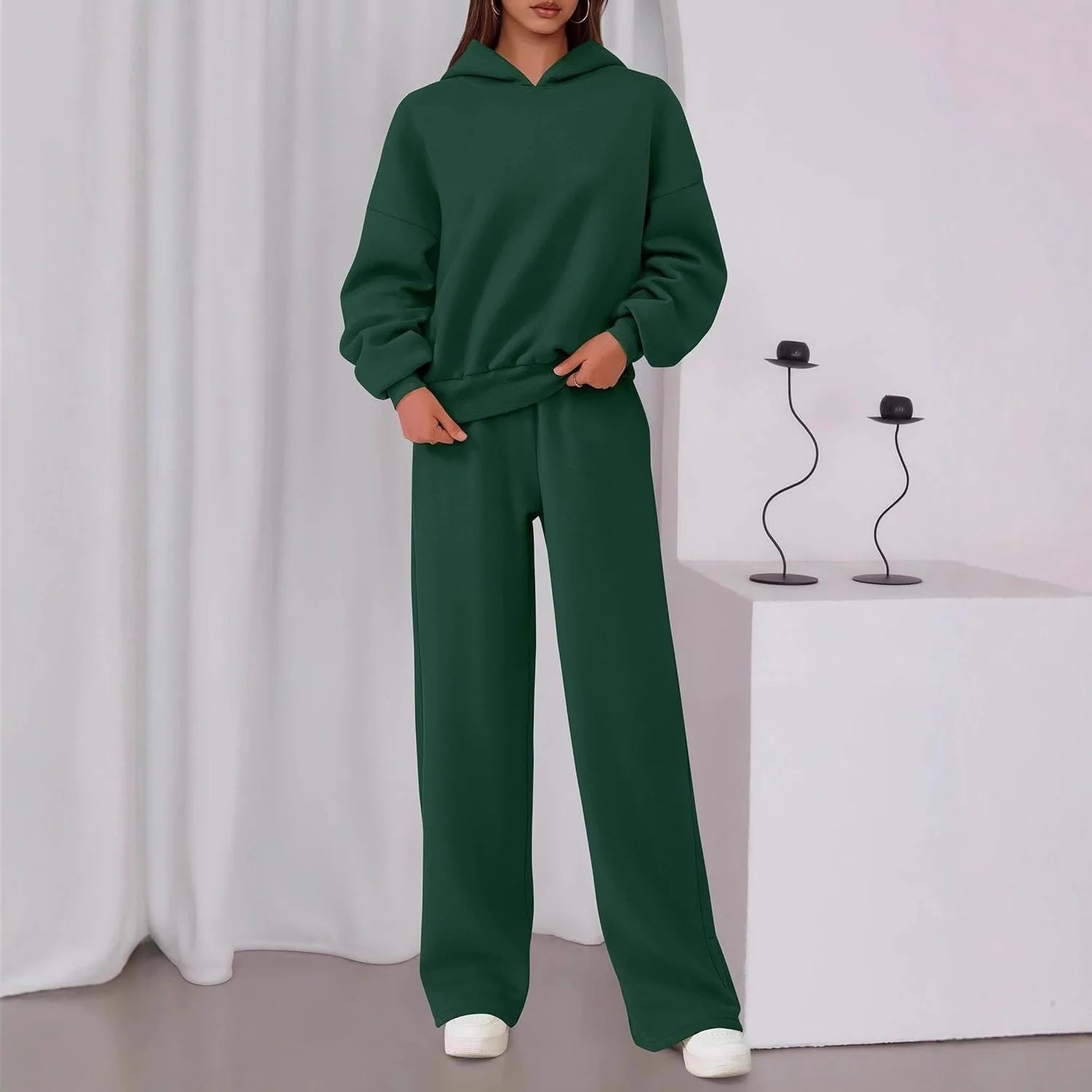 Casual Sporty Set: Loose Sweatshirt & Wide Leg Pants