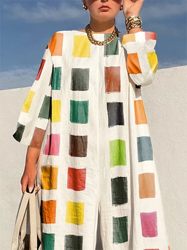 The three-quarter sleeves provide coverage while keeping the outfit airy and relaxed, ideal for casual outings.